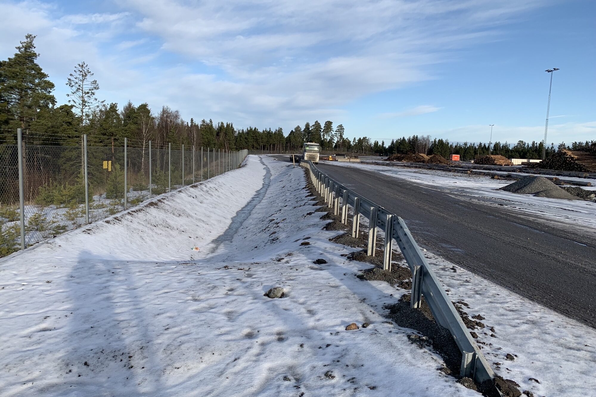 Vår lösning innefattade montering av 52m vägräcke i w-profil med kapacitetsklass H2W4 och två räckesavslut.